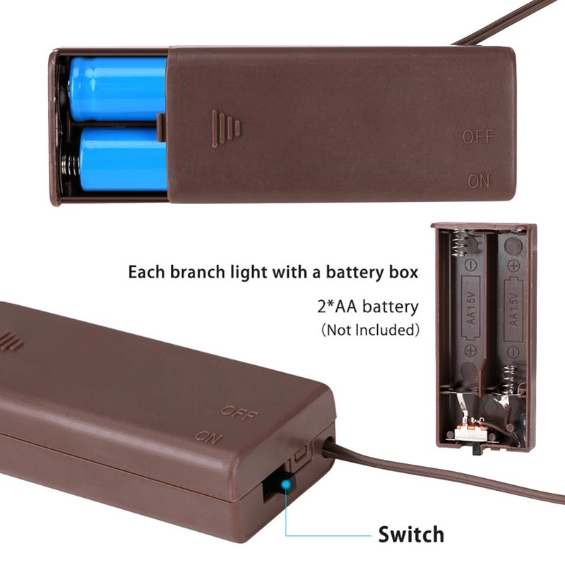 • Branche d'arbre 20 LED - Lumières de brindilles décoratives pliables alimentées par piles pour Noël, les fêtes et la décoration d'intérieur
