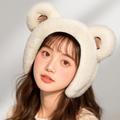 • DEZ45 Bandeau d'hiver avec oreilles d'ours en peluche - Bandeau chaud et coupe-vent pour femmes