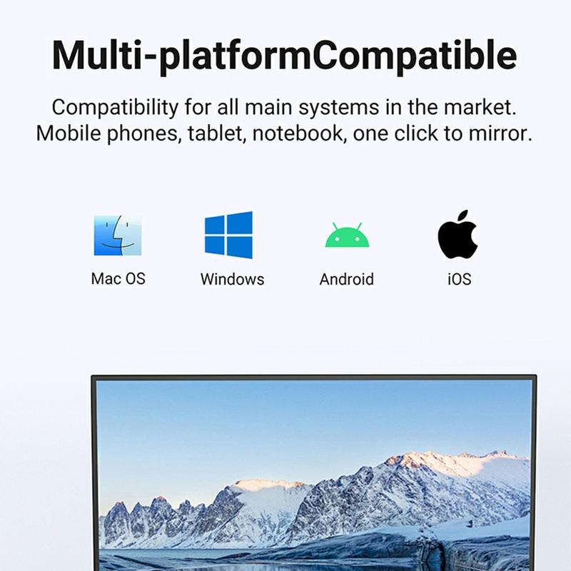 Compatible avec Android, iOS, Windows et macOS, le P1000 prend en charge les technologies Miracast et P2P. Cela permet une mise en miroir transparente de l'écran sur plusieurs appareils, ce qui le rend adapté à une utilisation personnelle et professionnelle.