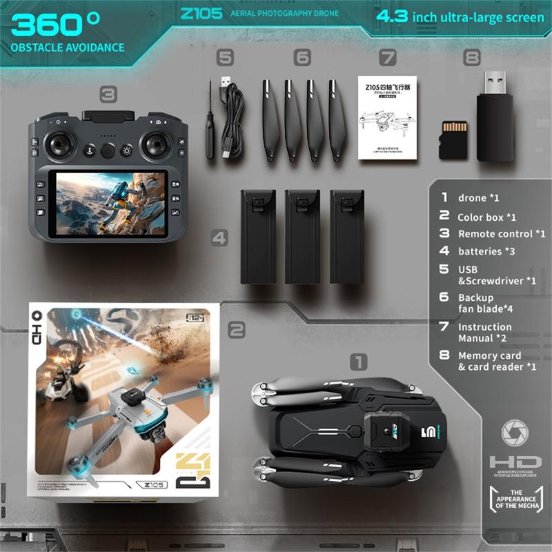 Le drone Z105 combine portabilité, innovation et performance dans un ensemble compact. Avec son écran de contrôle de 4.3 pouces, ses moteurs sans balais et ses fonctions de vol avancées, c'est l'outil ultime pour une photographie aérienne stable et sans effort et des expériences de vol immersives.