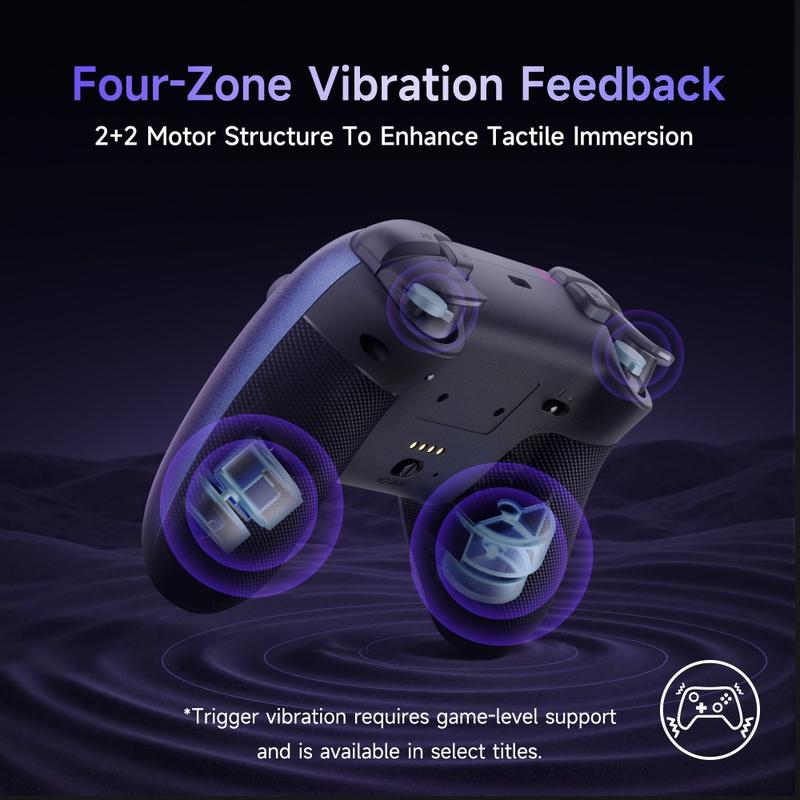 - Déclencheurs Hall adaptatifs à deux niveaux - Retour de résistance réaliste avec un système de vibration de moteur 2+2, simulant l'accélération, le freinage ou la tension de la corde de l'arc pour une expérience plus vraie que nature.