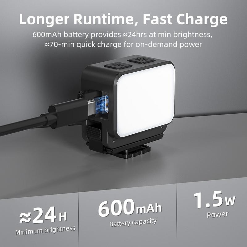 Améliorez vos vidéos et vos photos grâce à la lampe d'appoint pour caméra d'action FLYMILE, conçue pour apporter un éclairage net et flatteur à vos vlogs, vos prises de vue nocturnes et vos gros plans. Cette lampe compacte s'installe rapidement grâce à ses aimants intégrés puissants, et son boîtier étanche IPX4 en fait un compagnon fiable pour les tournages en extérieur. Avec trois options de température de couleur et plusieurs modes d'éclairage, vous pouvez rapidement vous adapter à l'environnement et obtenir des images nettes, naturelles et professionnelles.
