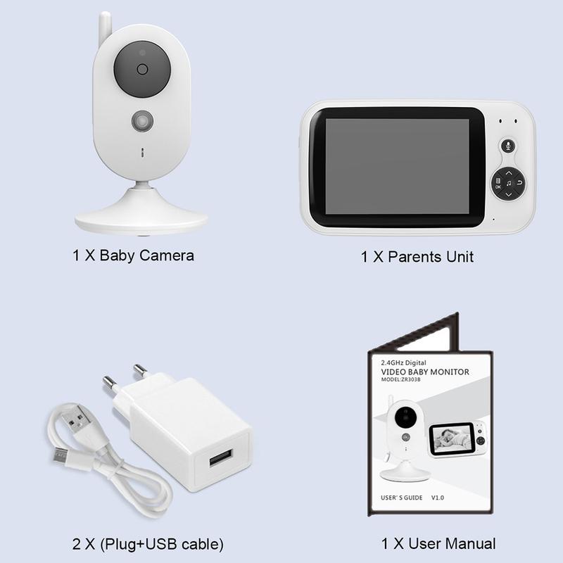 Écouteur pour bébé ZR303B avec écran LCD de 3.2", communication audio bidirectionnelle et alerte de température