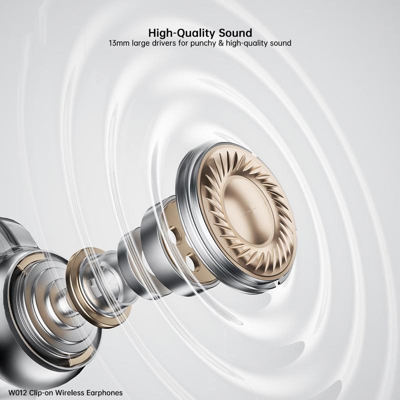 • Écouteurs sans fil Xundd W012 - Écouteurs à clip Bluetooth 5.4 avec commande tactile intelligente