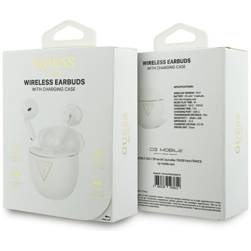 Les écouteurs sans fil Guess Gold Line Triangle allient un design élégant à une fonctionnalité au quotidien. Fabriqués sous licence officielle Guess, ils offrent un son clair pour la musique et les appels, tout en ajoutant une touche haut de gamme avec le logo Guess doré emblématique. Avec leurs commandes tactiles, leur connectivité Bluetooth 6 stable et leur indice de protection IPX5 contre la sueur et les éclaboussures, ils sont conçus pour les trajets quotidiens, les séances d'entraînement et l'écoute occasionnelle.