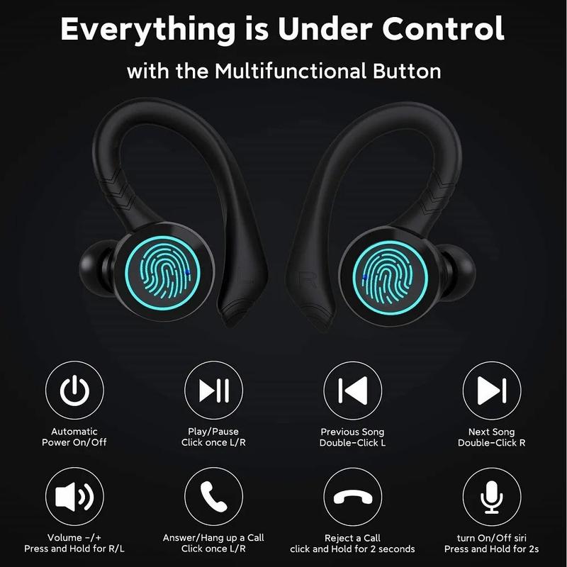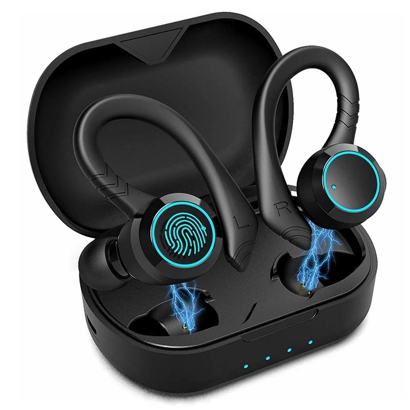 Écouteurs sans fil étanches pour le sport avec capteur tactile - Noir