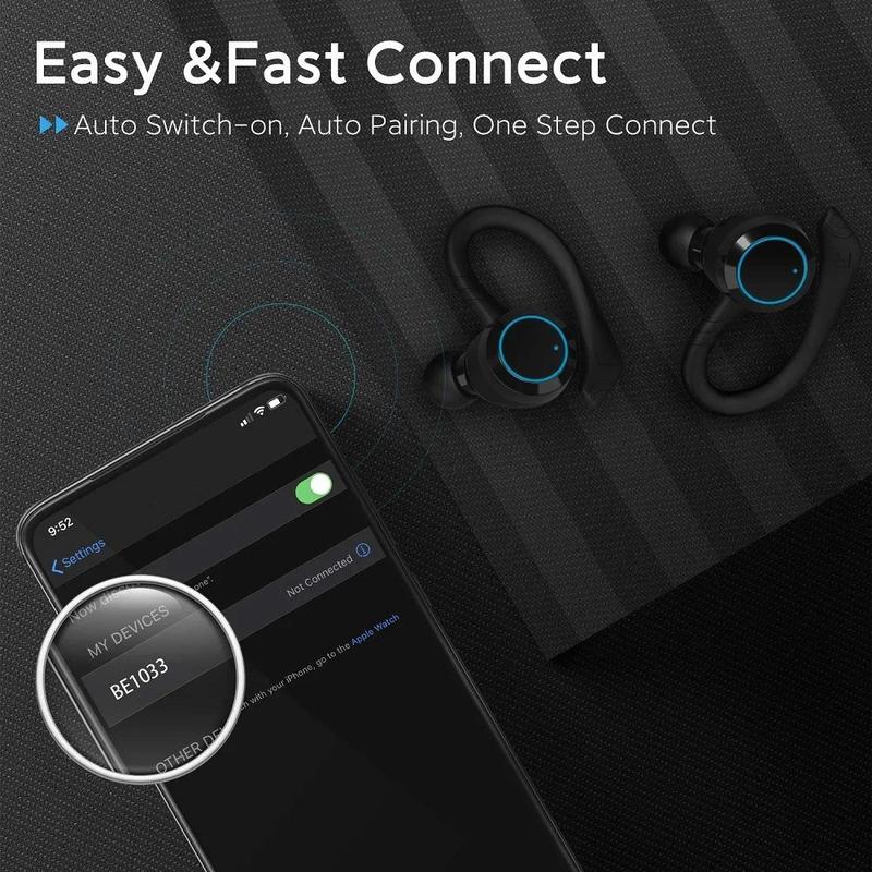 • Écouteurs Bluetooth de sport BE1033 - Casque sans fil étanche IPX7 avec boîtier de recharge et commandes tactiles