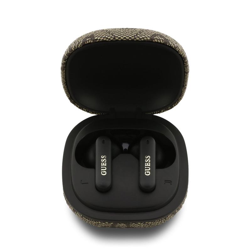 • Écouteurs True Wireless Guess 4G Script Logo ENC - Écouteurs Bluetooth 5.4 avec étui de chargement et réduction du bruit
