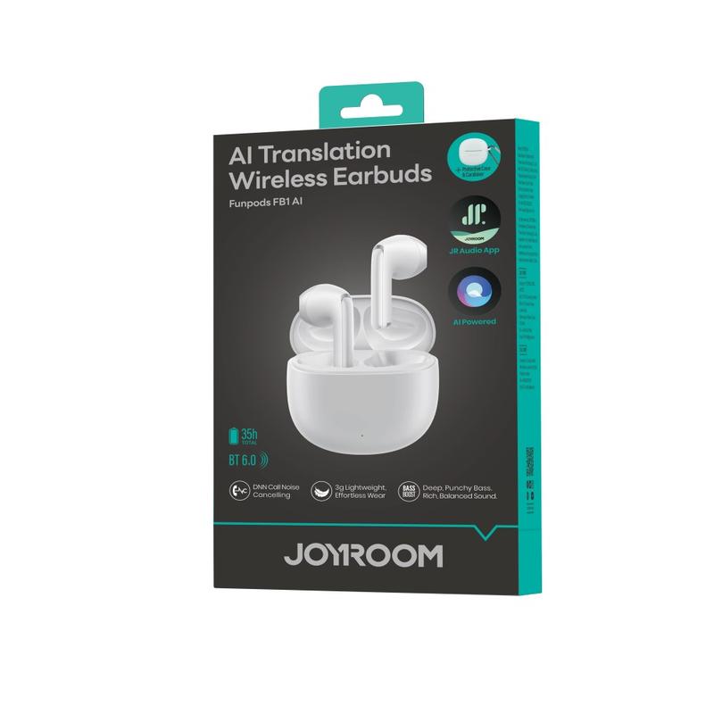 Écouteurs TWS Joyroom JR-FB1 avec traduction IA - Bluetooth 6.0, réduction du bruit DNN - Blanc