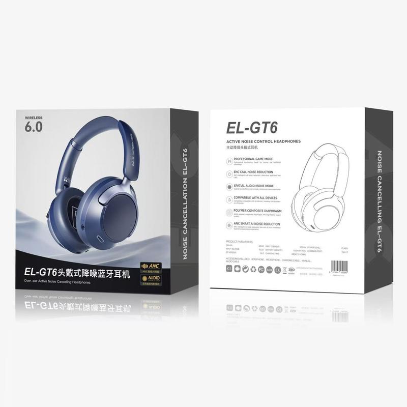Le casque sans fil EL-GT6 ANC à réduction de bruit offre un son immersif et un confort durable aux joueurs, aux mélomanes et aux professionnels. Doté de la technologie avancée ANC 3.0 avec réduction adaptative du bruit, il bloque les distractions et améliore votre expérience d'écoute. Équipé de haut-parleurs dynamiques de 40 mm et de membranes composites en microcristal, il produit des basses profondes, des médiums clairs et des aigus nets pour une qualité sonore HiFi. Avec la connectivité Bluetooth 6.0, une faible latence et jusqu'à 120 heures d'autonomie, ce casque supra-auriculaire allie performance, confort et endurance dans un ensemble haut de gamme.