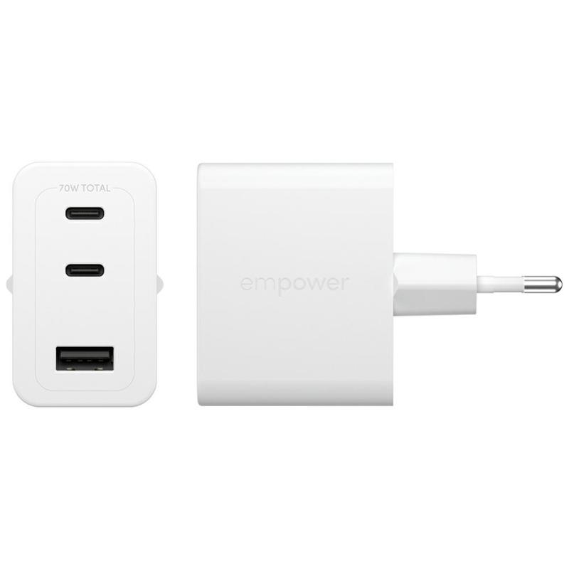 Empower by PanzerGlass Chargeur Turbo 70 W - Chargeur rapide GaN 2× USB-C + 1× USB-A