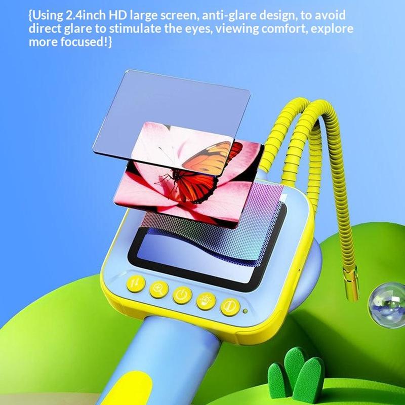 Transformez vos promenades quotidiennes dans la nature en véritables moments de découverte grâce à l'endoscope explorateur ES09 pour enfants. Conçu pour les enfants curieux et l'apprentissage pratique, il leur permet d'observer des endroits normalement difficiles à voir, comme les trous dans les arbres, les fourmilières, les crevasses dans les rochers ou les coins d'un aquarium. L'écran couleur HD de 2.4 pouces affiche des images en direct vives et nettes, avec un design anti-éblouissement pour un visionnage plus confortable, tandis que la sonde flexible et malléable peut être pliée dans la position souhaitée et y rester, rendant l'exploration plus facile et plus amusante.