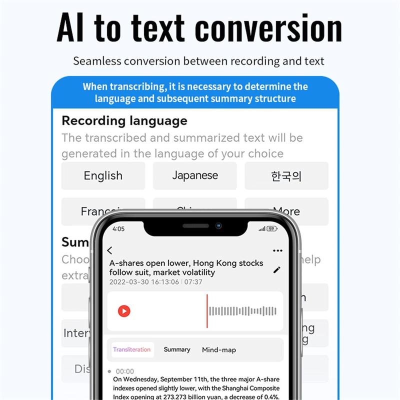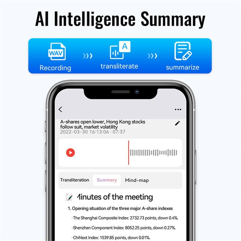 • M29A AI Enregistreur vocal 8GB - Enregistreur magnétique intelligent avec transcription ChatGPT et traduction en 59 langues