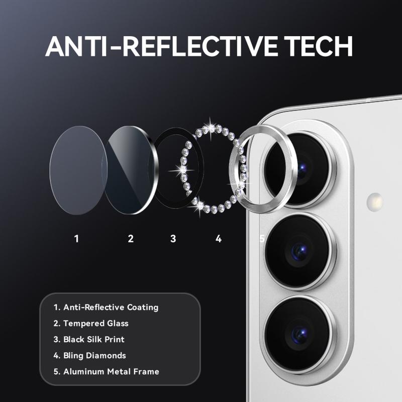 Ajoutez de l'éclat et de la protection à votre Samsung Galaxy S26+ avec la protection de l'objectif de l'appareil photo NORTHJO. Conçu avec des strass scintillants et un verre trempé taillé avec précision, il protège l'objectif de l'appareil photo des rayures, de la poussière et des chocs tout en ajoutant une touche d'élégance et de luxe.