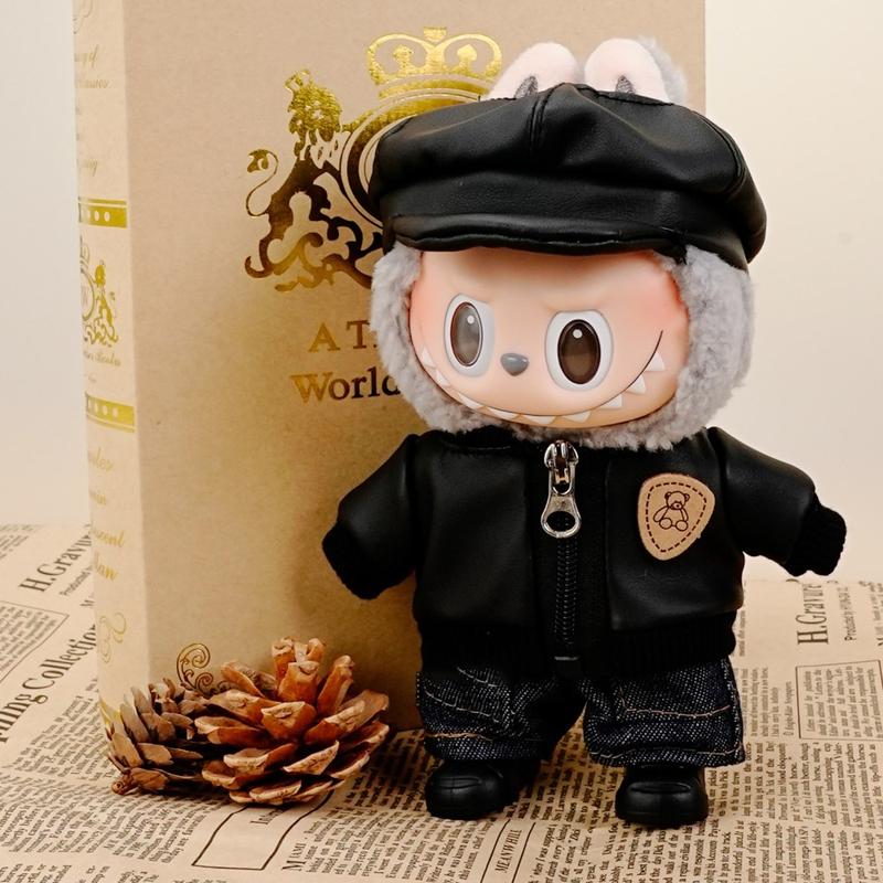 Ensemble vintage style aviateur pour poupée Labubu 17cm - 5Pcs Changeable Costume avec T-Shirt, Veste, Jeans, Chapeau & Chaussures pour Figurines Gen 1 / 2 / 3