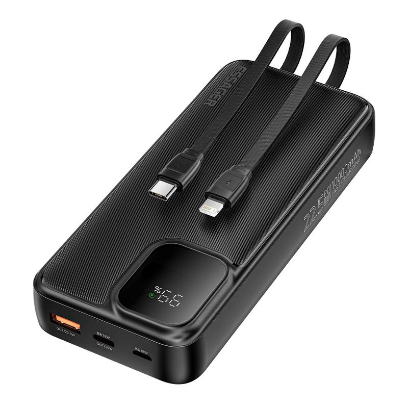 La banque d'alimentation à affichage numérique ESSAGER 10000mAh est conçue pour les modes de vie modernes et rapides. Avec deux câbles intégrés (Type-C et Lightning), un affichage précis de la puissance par LED et une charge rapide de 22,5 W, il fournit une alimentation fiable en déplacement sans nécessiter d'accessoires supplémentaires. Parfait pour les voyages, les déplacements et l'utilisation quotidienne.
