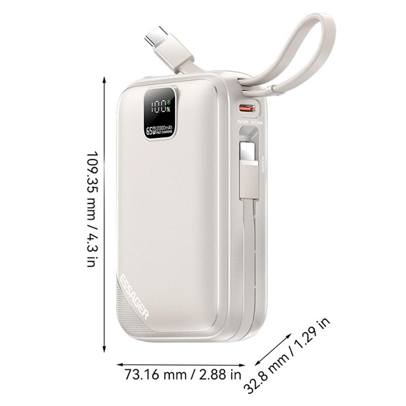 • Essager 20000mAh PD 65W Batterie externe à charge rapide - Batterie externe portable avec écran LED, câbles Lightning et USB-C intégrés