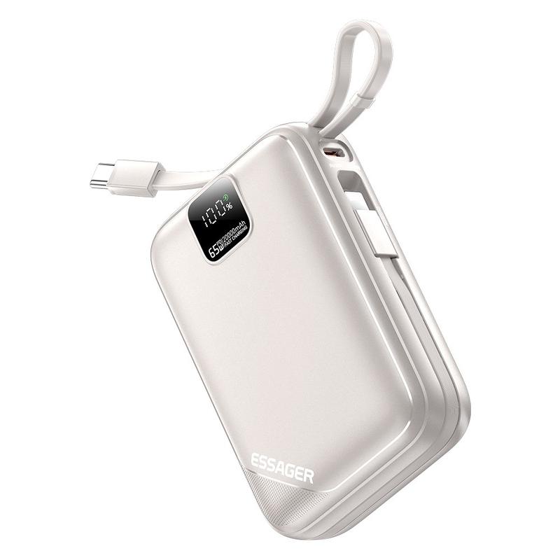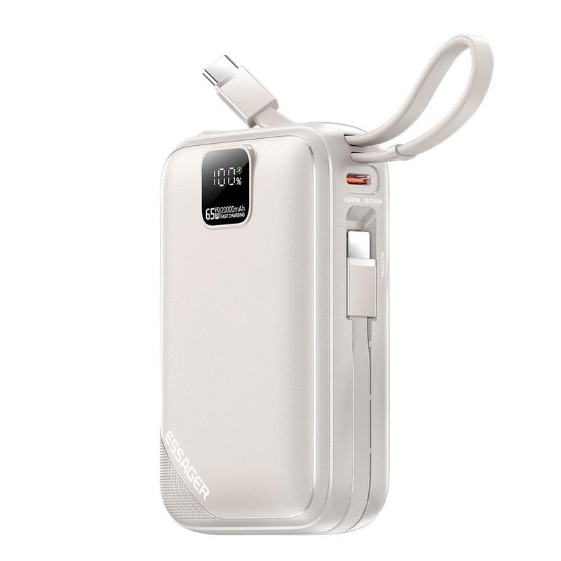 La banque d'alimentation ESSAGER 20000mAh délivre jusqu'à 65W Power Delivery, offrant une charge rapide de niveau ordinateur portable pour les smartphones, les tablettes, les ultrabooks et les appareils USB-C. Idéal pour les voyages, le travail et les urgences.