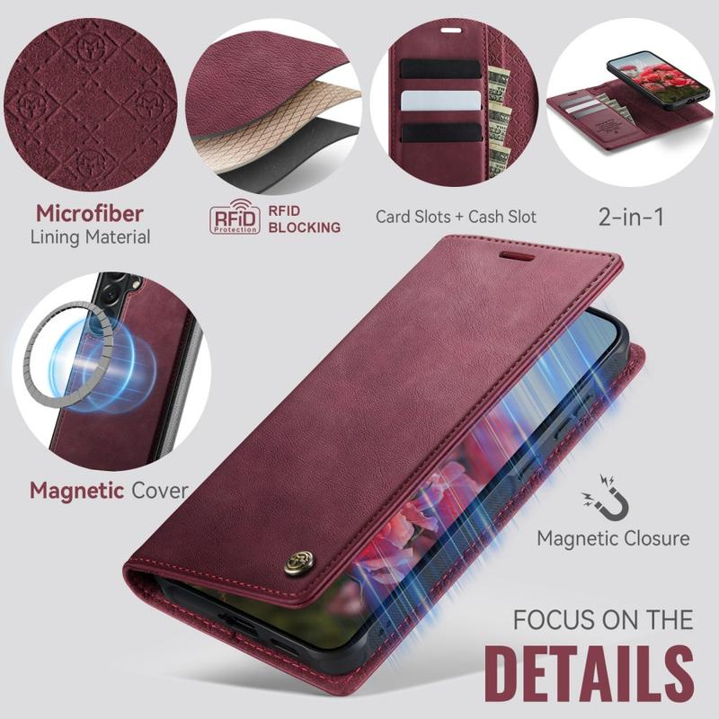 L'étui portefeuille CaseMe C49 pour Samsung Galaxy A57 est fabriqué à partir de TPU et de polyuréthane durables, offrant une prise en main confortable et une protection fiable contre les chocs, les chutes et les rayures au quotidien. À l'intérieur, une doublure en microfibre douce permet à votre appareil de rester impeccable.