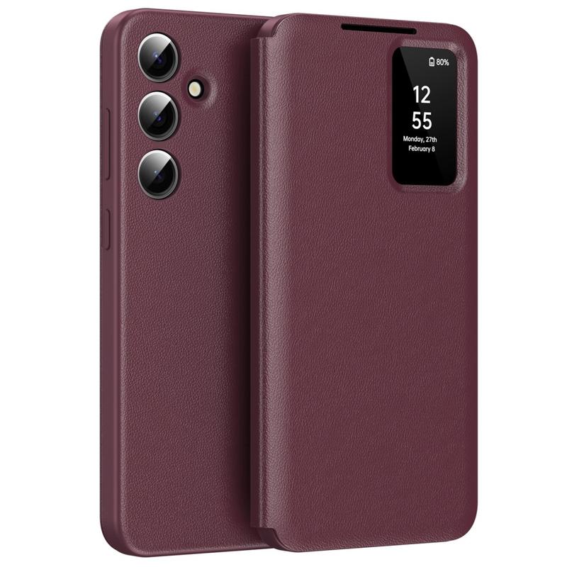 Étui à rabat Samsung Galaxy S25 FE Smart Clear View avec fente pour carte - Vin Rouge