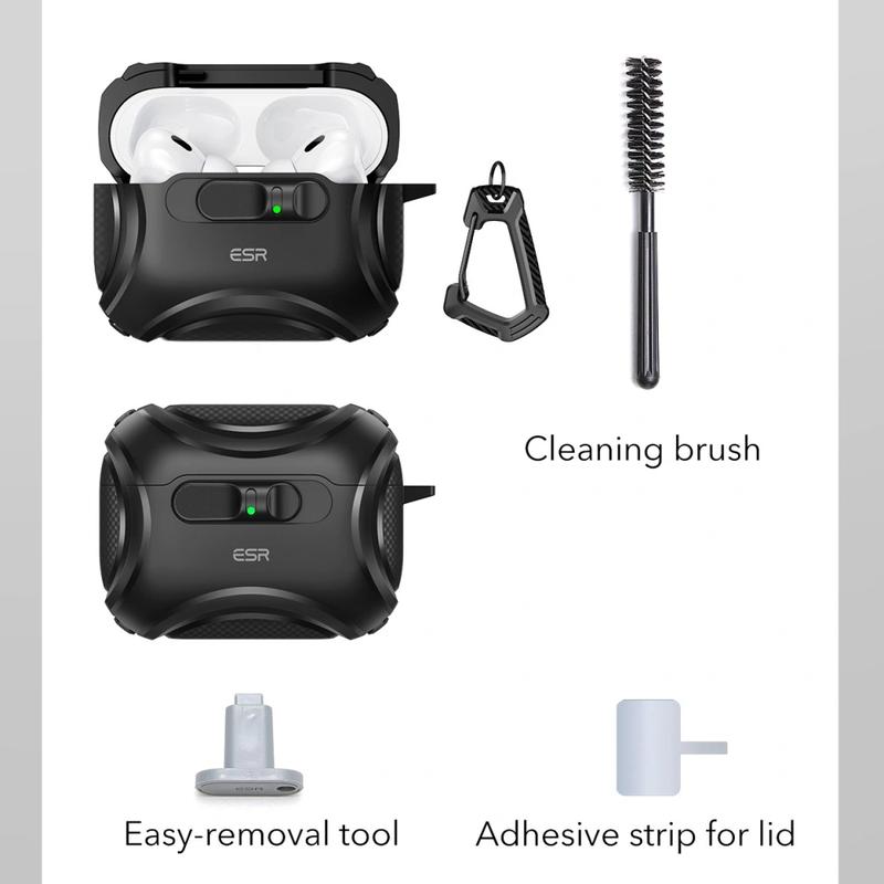 L'étui ESR Cyber FlickLock - est conçu pour les utilisateurs qui ont besoin d'une protection supérieure et d'une sécurité absolue. Le système innovant FlickLock - combine de puissants aimants en haut et en bas avec un loquet mécanique interne, garantissant que vos AirPods Pro 3 - restent verrouillés à l'intérieur de l'étui et ne tombent jamais accidentellement.