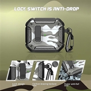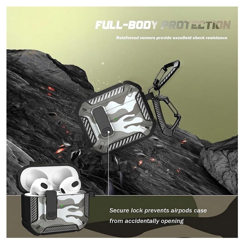 Étui en TPU antichoc et camouflage avec mousqueton pour AirPods 4 - compatible avec la recharge sans fil
