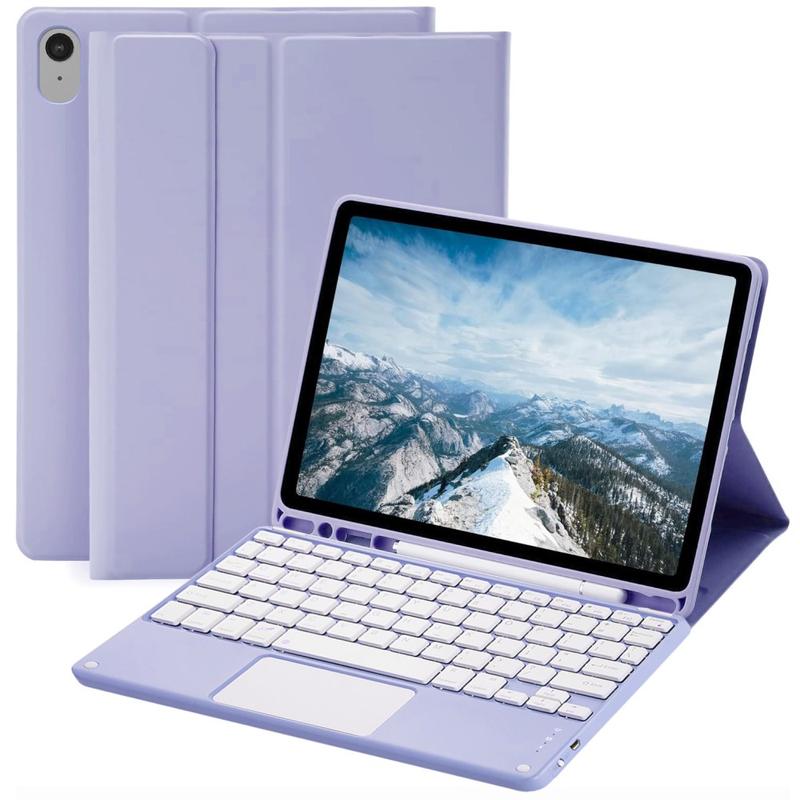 Améliorez votre iPad Air 11 2026/2025/2024, iPad Air 2022/2020 avec l'étui clavier Bluetooth, un accessoire 2-en-1 multifonctionnel qui allie protection, productivité et style. Fabriqué en polyuréthane de première qualité, cet étui élégant offre une protection complète contre les rayures, les chocs et les empreintes digitales, tout en conservant un aspect professionnel. Le clavier Bluetooth se connecte sans fil pour une frappe fluide et réactive, tandis que le pavé tactile intégré prend en charge le contrôle multi-gestes pour une navigation sans effort. Le clavier rétroéclairé vous permet de taper confortablement même dans des environnements peu éclairés. Le support réglable intégré offre un angle de vue ergonomique, ce qui le rend parfait pour la saisie, la lecture en continu ou la lecture. Conçu pour les affaires, les voyages ou l'usage quotidien, cet étui-clavier transforme votre tablette en station de travail portable.