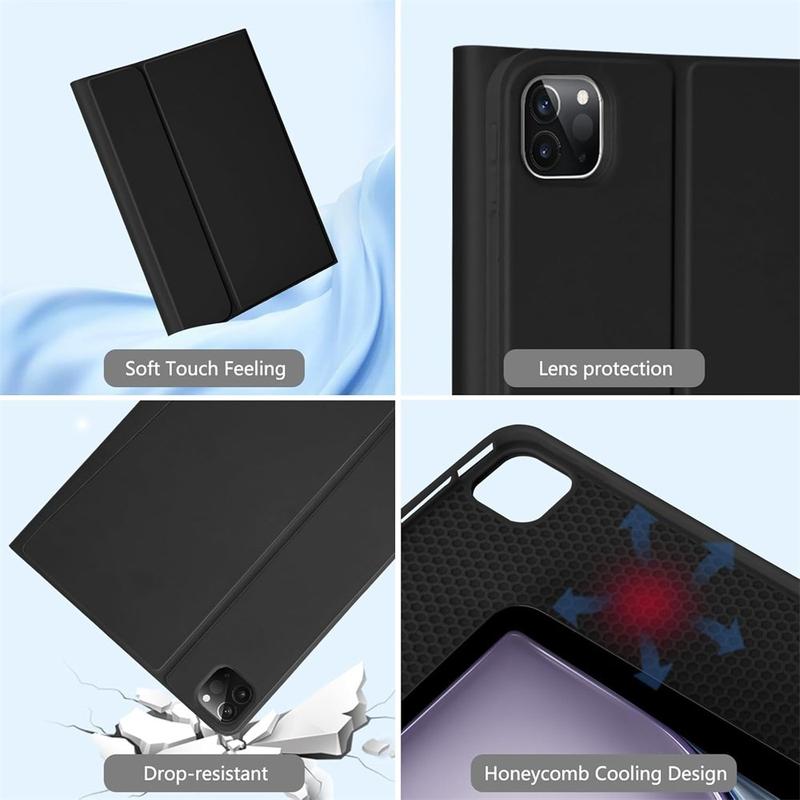 Améliorez votre iPad Air 13 2026/2025/2024, iPad Pro 12.9 2022/2021/2020/2018 avec l'étui clavier Bluetooth, un accessoire 2-en-1 multifonctionnel qui allie protection, productivité et style. Fabriqué en polyuréthane de première qualité, cet étui élégant offre une protection complète contre les rayures, les chocs et les empreintes digitales, tout en conservant un aspect professionnel. Le clavier Bluetooth se connecte sans fil pour une frappe fluide et réactive, tandis que le pavé tactile intégré prend en charge le contrôle multi-gestes pour une navigation sans effort. Le clavier rétroéclairé vous permet de taper confortablement même dans des environnements peu éclairés. Le support réglable intégré offre un angle de vue ergonomique, ce qui le rend parfait pour la saisie, la lecture en continu ou la lecture. Conçu pour les affaires, les voyages ou l'usage quotidien, cet étui-clavier transforme votre tablette en station de travail portable.