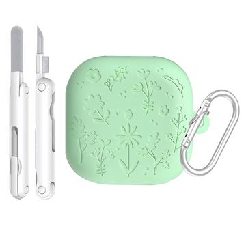 Étui en silicone gravé floral avec stylos de nettoyage et mousqueton pour Samsung Galaxy Buds4, Galaxy Buds4 Pro