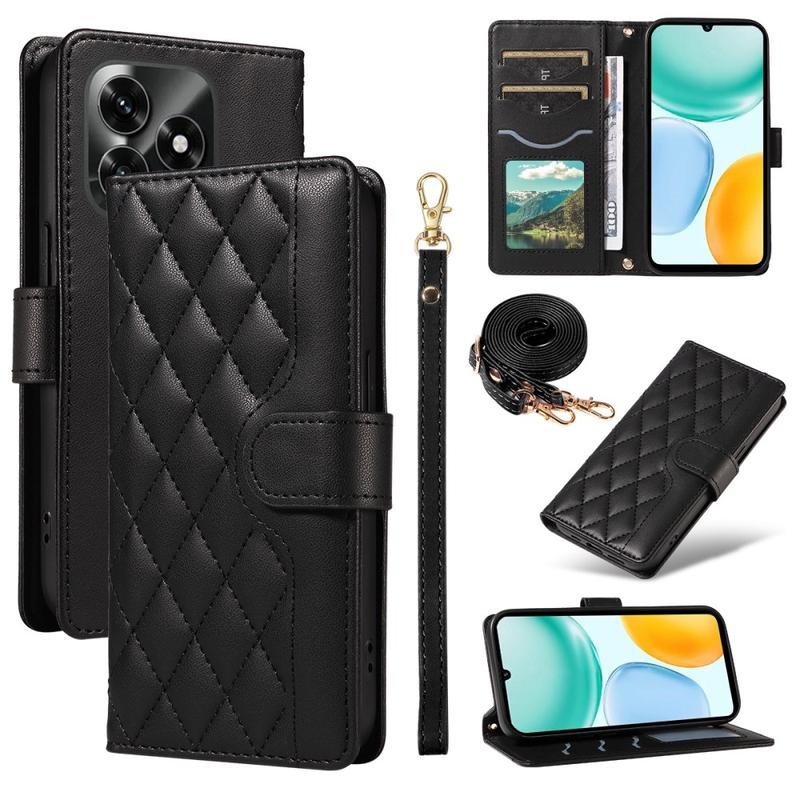 Étui de luxe matelassée avec bandoulière et poignet pour Honor X5c Plus - Étui protectrice à motif en losange