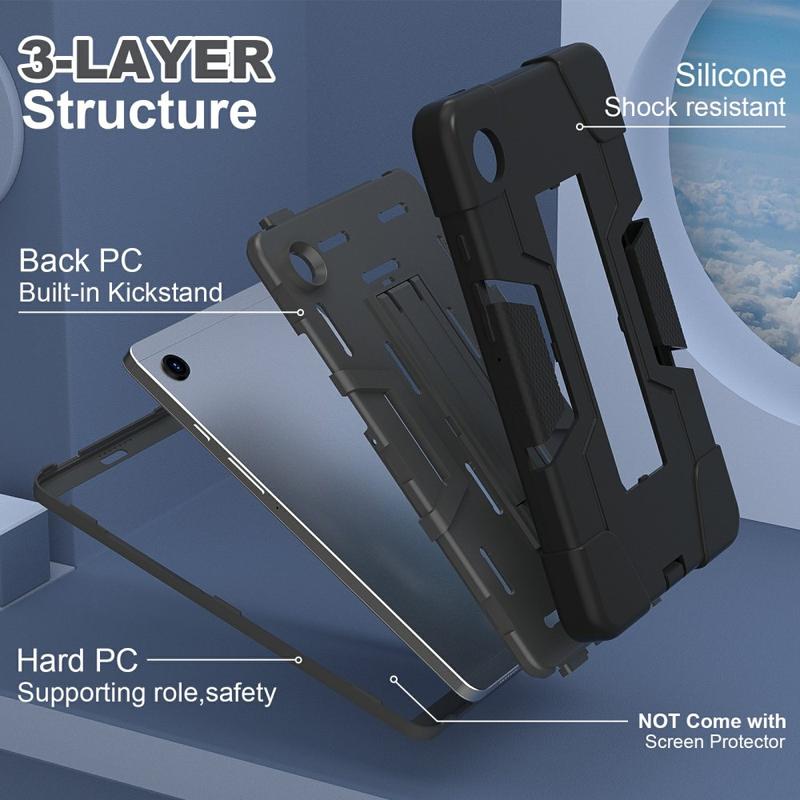 Étui hybride de style robot pour Samsung Galaxy Tab A11 - Étui de protection triple couche avec béquille intégrée et porte-stylet