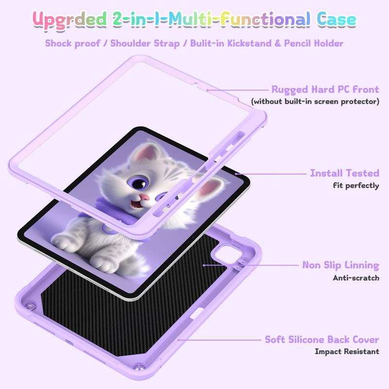 Étui hybride chat mignon avec béquille, bandoulière et porte-stylet pour iPad Pro 11 (2024), iPad Pro 11 (2025)