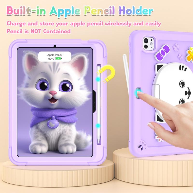 L'étui pour iPad Pro 11 (2024), iPad Pro 11 (2025) Cat Case combine un design mignon, une protection intelligente et des fonctionnalités pratiques. Avec sa prise en main sûre, son support réglable et sa couverture complète, il permet à votre appareil de rester en sécurité et élégant où que vous alliez.