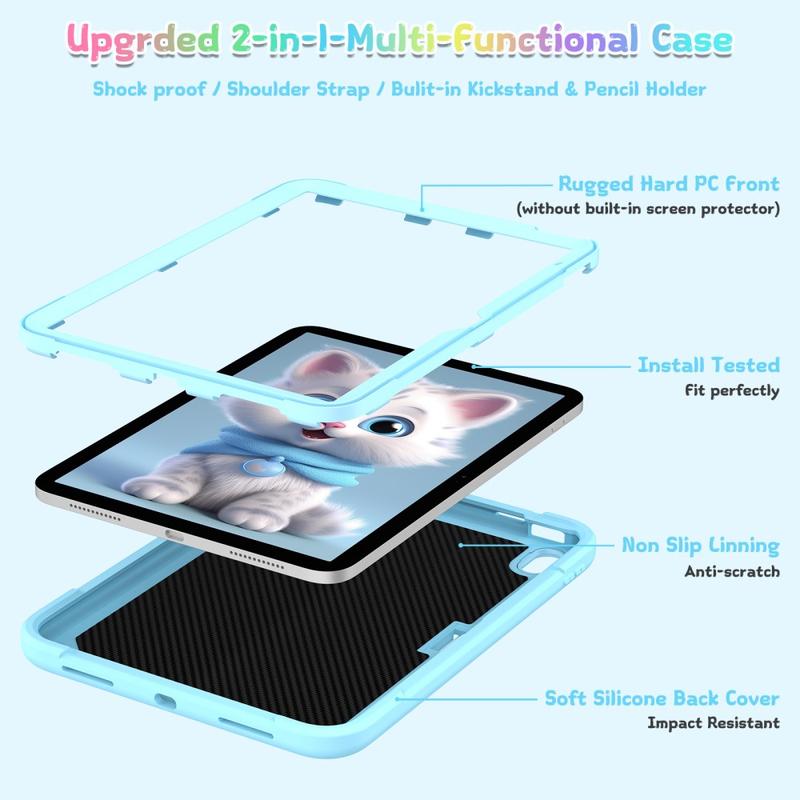 Étui hybride chat mignon avec béquille, bandoulière et porte-stylet pour iPad (2022), iPad (2025)