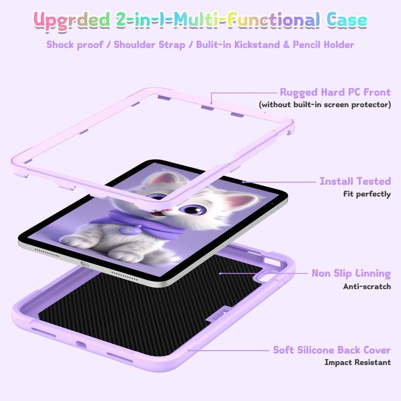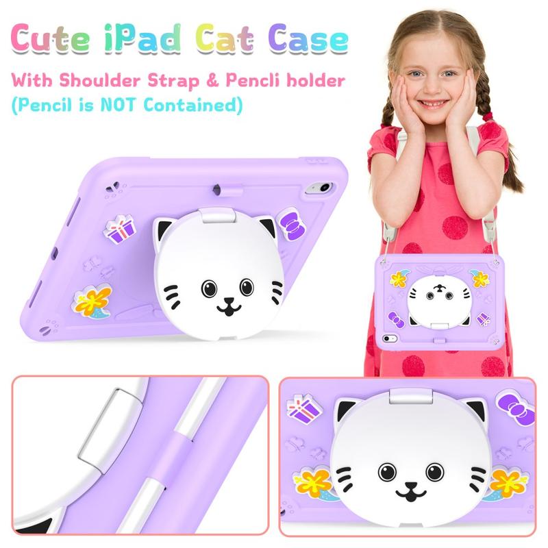 Étui hybride chat mignon avec béquille, bandoulière et porte-stylet pour iPad (2022), iPad (2025)