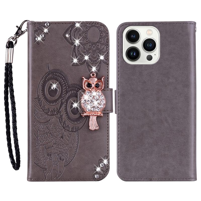 Etui iPhone 16 Pro Hibou Strass - Gris