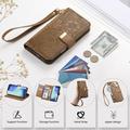 • Etui portefeuille à motifs floraux et de feuilles avec pochette zippée et dragonne pour iPhone 17 Pro