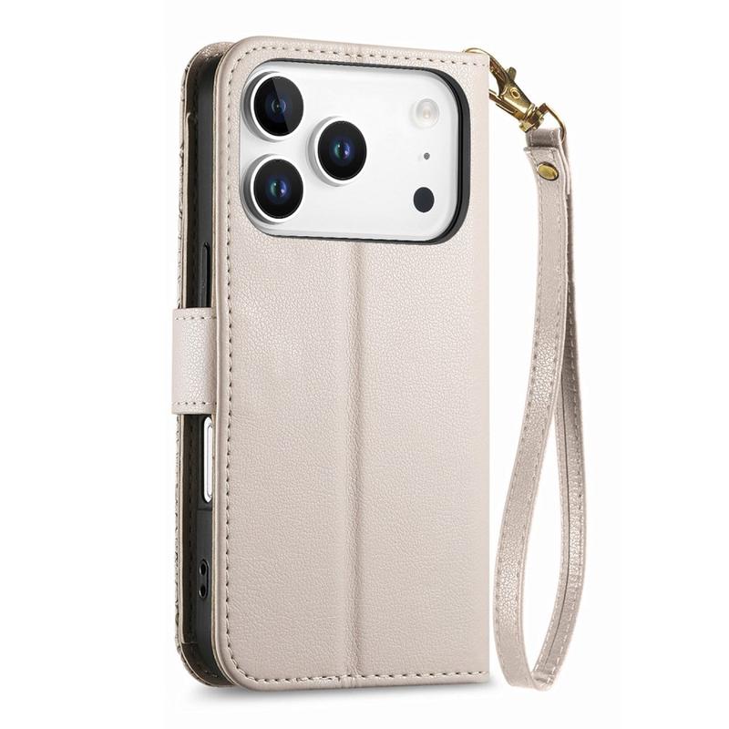 • Etui portefeuille à motifs floraux et de feuilles avec pochette zippée et dragonne pour iPhone 17 Pro