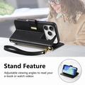 • Etui portefeuille à motifs floraux et de feuilles avec pochette zippée et dragonne pour iPhone 17 Pro Max