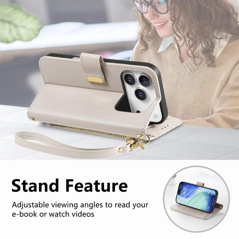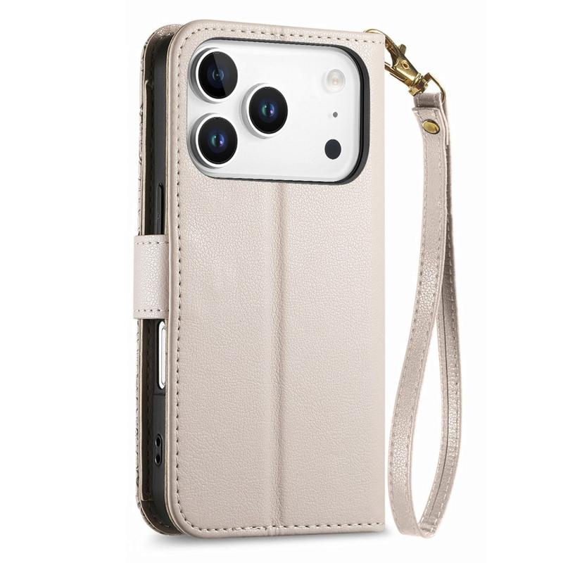 • Etui portefeuille à motifs floraux et de feuilles avec pochette zippée et dragonne pour iPhone 17 Pro Max