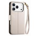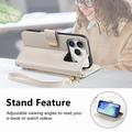 Etui iPhone 17 Pro Max à motifs floraux et de feuilles avec pochette zippée et dragonne - Blanc