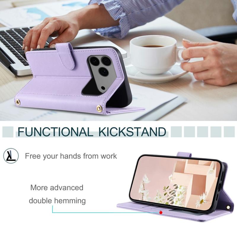 Protégez votre iPhone 17 Pro Max avec cet étui portefeuille matelassé luxueux. Fabriqué en TPU recouvert de cuir PU, cet étui est résistant aux rayures et aux traces de doigts, pour un téléphone élégant et raffiné. Les coutures en losanges lui confèrent une touche tendance et élégante. Le bord surélevé de l'appareil photo et de l'écran offre une protection efficace contre les rayures, tandis que les découpes précises offrent un accès complet à tous les boutons, ports et autres fonctionnalités. Son design portefeuille permet de ranger facilement vos cartes et vos billets. Offrant une protection renforcée contre les rayures, les chocs, les chutes et les aléas du quotidien, cet étui est également doté d'une bandoulière et d'une dragonne pour plus de commodité.