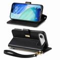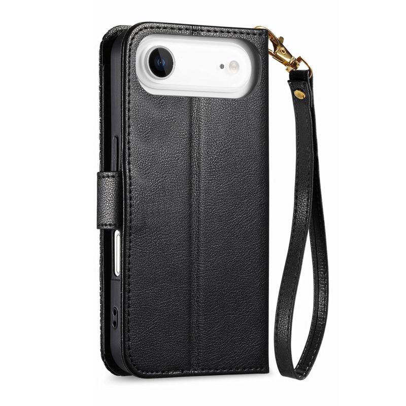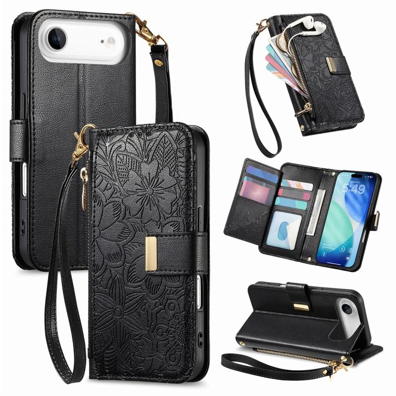 Etui portefeuille à motifs floraux et de feuilles avec pochette zippée et dragonne pour iPhone Air