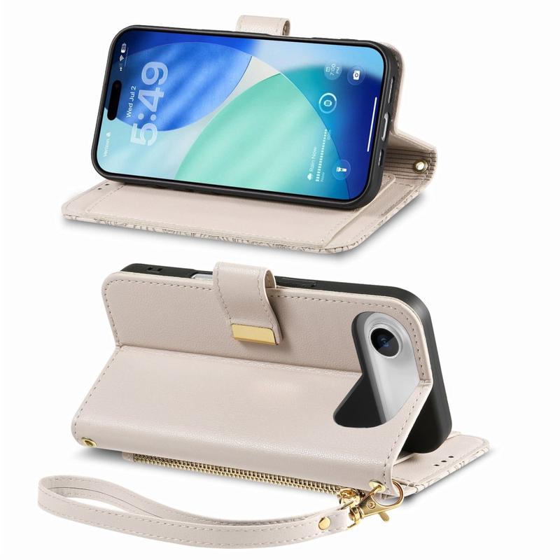 • Etui portefeuille à motifs floraux et de feuilles avec pochette zippée et dragonne pour iPhone Air