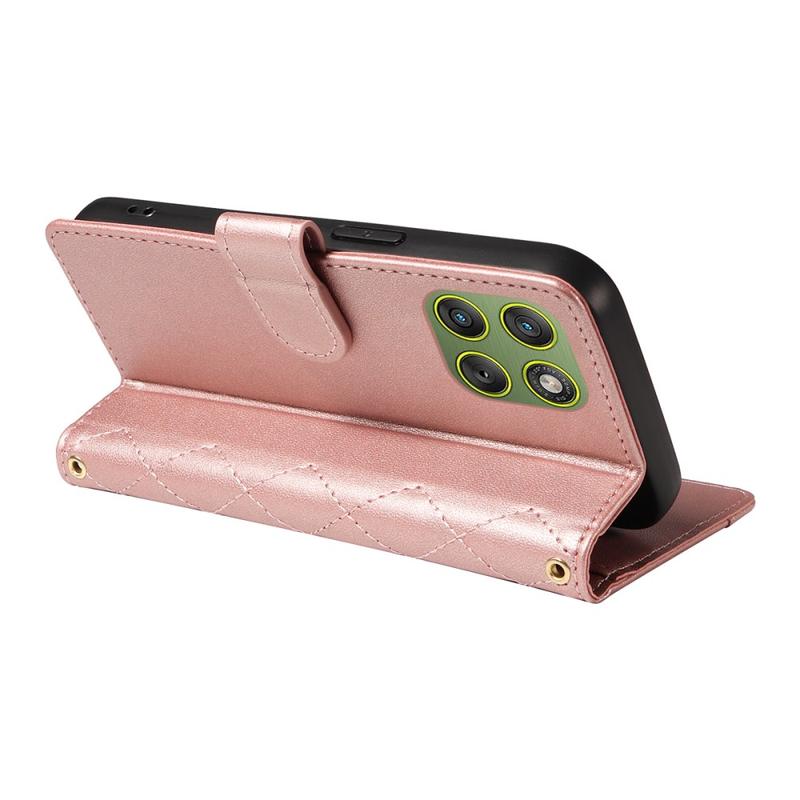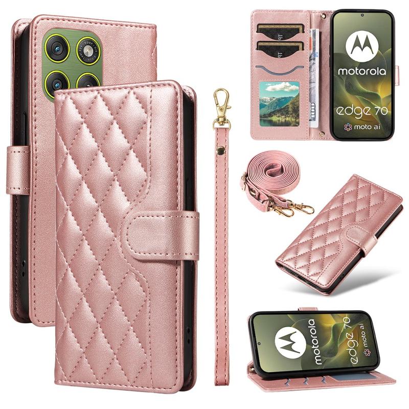 • Étui de luxe matelassée avec bandoulière et poignet pour Motorola Edge 70 - Étui protectrice à motif en losange