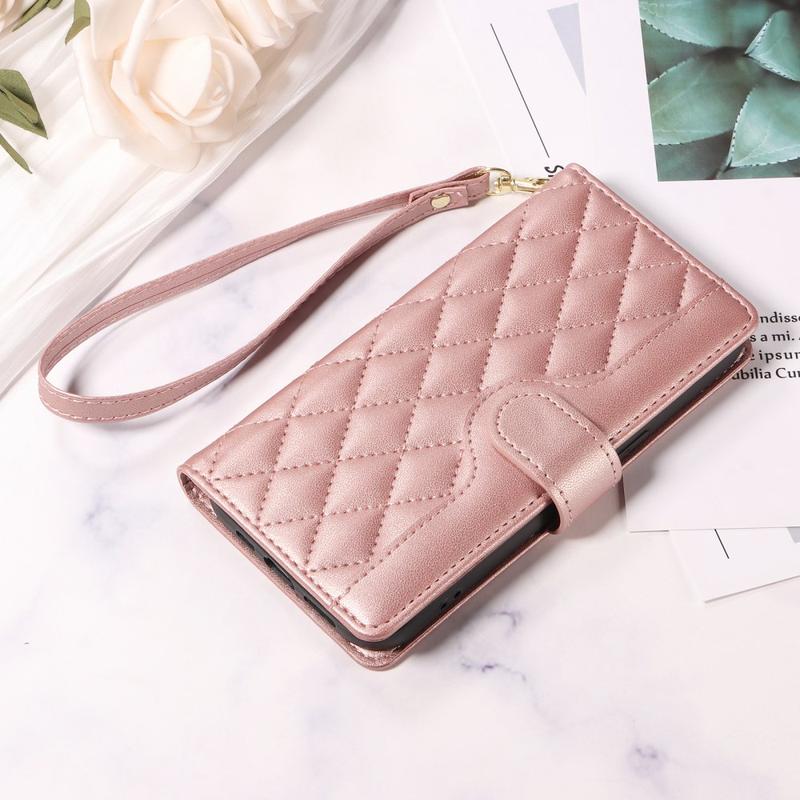 L'étui portefeuille matelassé de luxe offre un look haut de gamme et très tendance tout en protégeant votre téléphone et vos objets essentiels. Son format portefeuille fonctionnel, ses sangles détachables et sa texture en cuir souple le rendent à la fois pratique et élégant - un accessoire indispensable pour les utilisateurs modernes de l'iPhone.