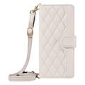 Étui de luxe matelassée avec bandoulière et poignet pour Motorola Edge 70 - Étui protectrice à motif en losange