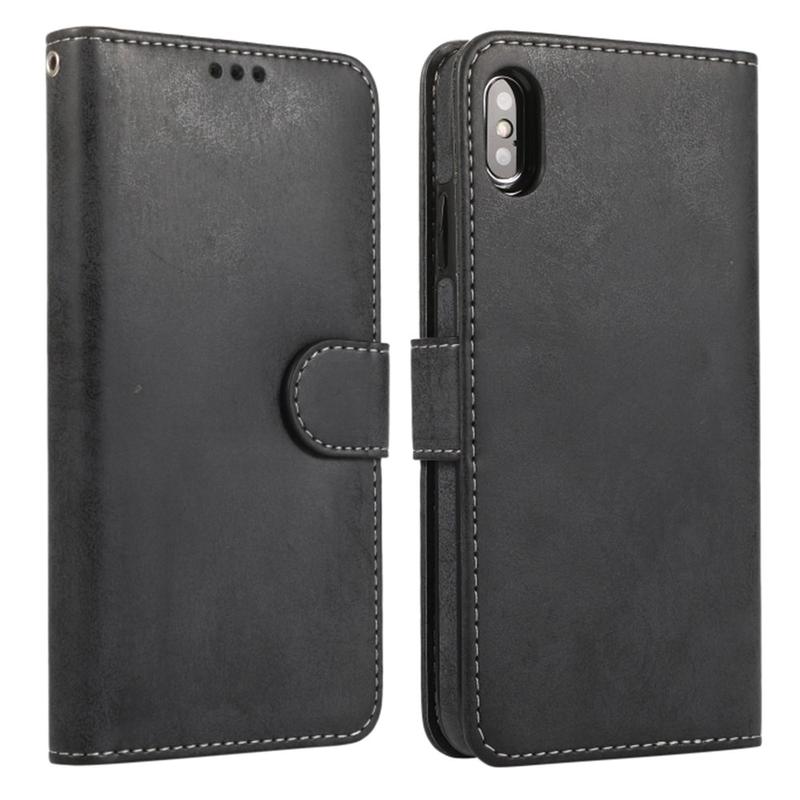 Étui portefeuille vintage 2-en-1 avec rabat magnétique amovible pour iPhone XS Max