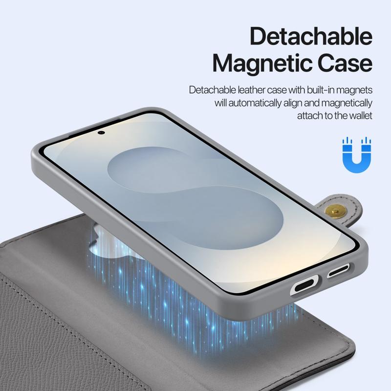 Étui portefeuille en cuir Samsung Galaxy S26+ avec couverture magnétique Dux Ducis Lawa - Gris