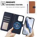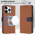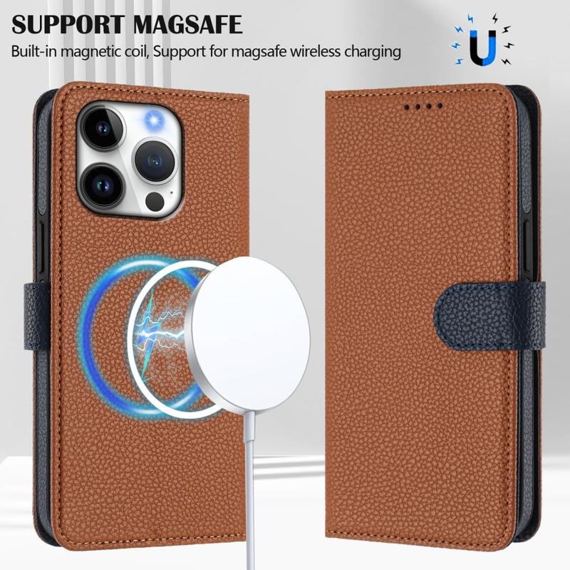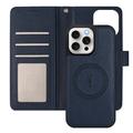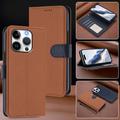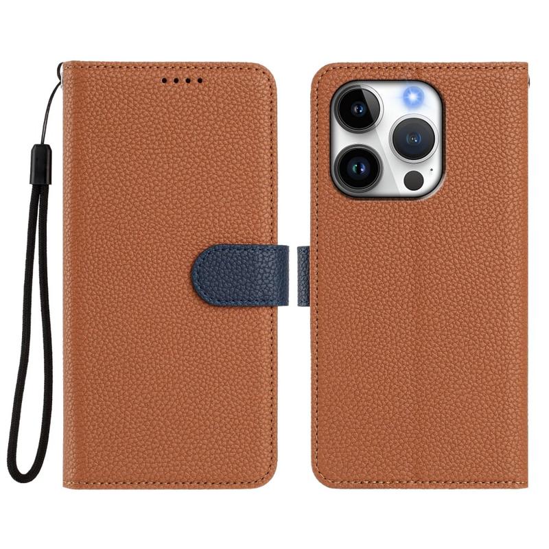 Étui portefeuille détachable iPhone 16 Pro avec MagSafe, protection RFID et dragonne - Marron / Bleu